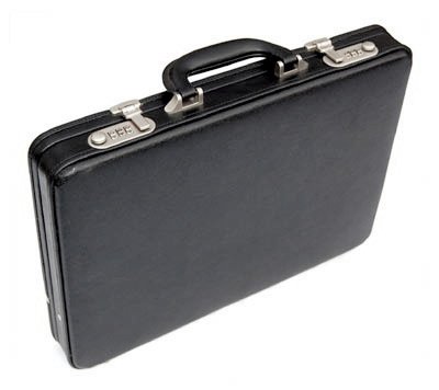 Black Slim Attache Case in PVC with Brass colour combination Locks.