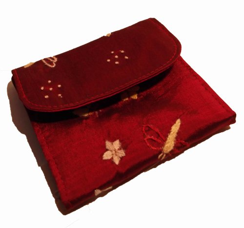 In Handbag Heaven Beautiful & Unusual Satin, Embroidered Credit Card Holder, Business Card Holder or Wallet - Deep Red - Free P&P