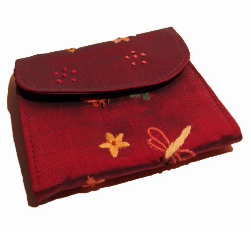 A luxurious and beautiful, embroidered satin, card wallet to organise credit cards, business cards or your stash of cash! Undo the velcro fastener to reveal 4 slots for cards and a deeper pocket for coins, notes or receipts.