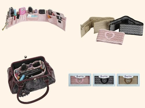 Pink Bagatidy handbag organiser in heart motif material. This organiser has 14 expandable pockets of varying size to hold your everyday items as well as a keyring clip; it's unique sytle means it can be folded to fit most different sized bags, making it really versatile. Hand washable, approx size 66cm L x 11cm H.