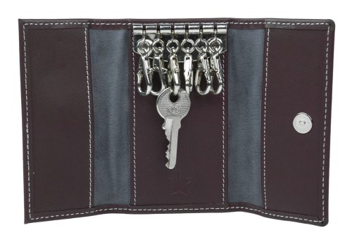 Starlite Brown Real Leather Keychain 5 Key Holder Hooks Wallet Case