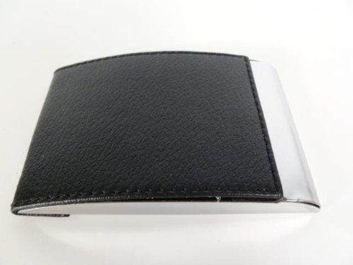 Business Card Holder in Black and Silver, Leather Fronted