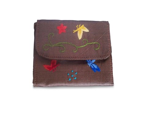 In Handbag Heaven Beautiful & Unusual Satin, Embroidered Credit Card Holder, Business Card Holder or Wallet in Earthy Hue - FREE P&P