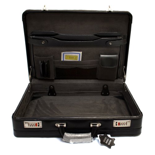 LEATHER EXPANDER ATTACHE CASE LARGE SIZE Blk (2377)