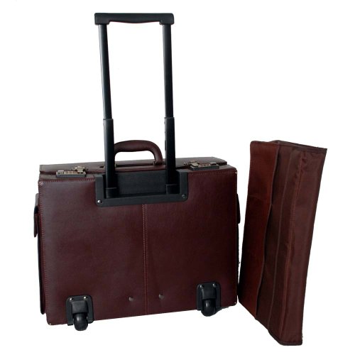 38564 Burg. Leather Pilot case on wheels with removable Laptop holder sleeve