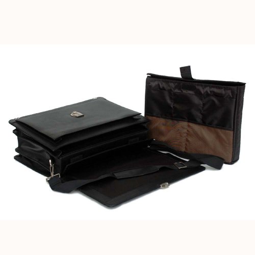 4393-3 Blk Leather Laptop Holder with removable Sleeve