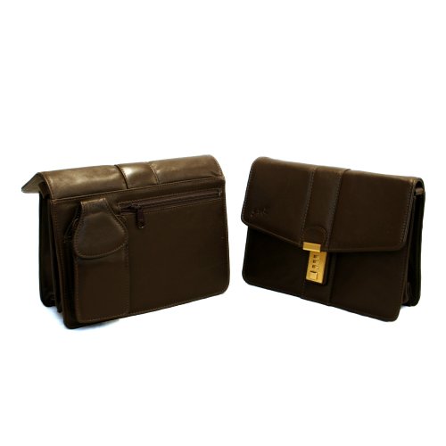 D4098(D4071) Gents Leather Wrist Bag with Amiet combination Lock Bwn