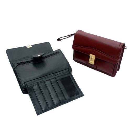 Leather Travelling Wrist bag for Gents in Dark Cognac (Burgundy) Colour with Three combination Amiet Lock. Manufactured from Soft Nappa leather & very high Workmanship. Ideal for Travellers. Inside many pockets to hold travel Tickets, Travel Documents, cards, etc. Individually covered in cotton bag.