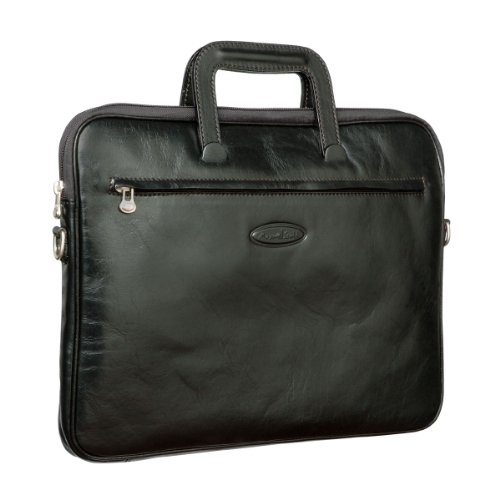 This leather document folio in night black is a smarter alternative to the tan or dark brown. Perfect for those who only need to carry basics to the office, this carrier can hold a small laptop or your usual files and paperwork. Designed to suit you, this folio can be worn tucked under the arm, over the shoulder or handheld like a traditional briefcase. Designed in the UK and manufactured in Italy, this document case has been constructed using full grain leather that will last a lifetime. This document folio is sure to become a valued addition to any business individual.